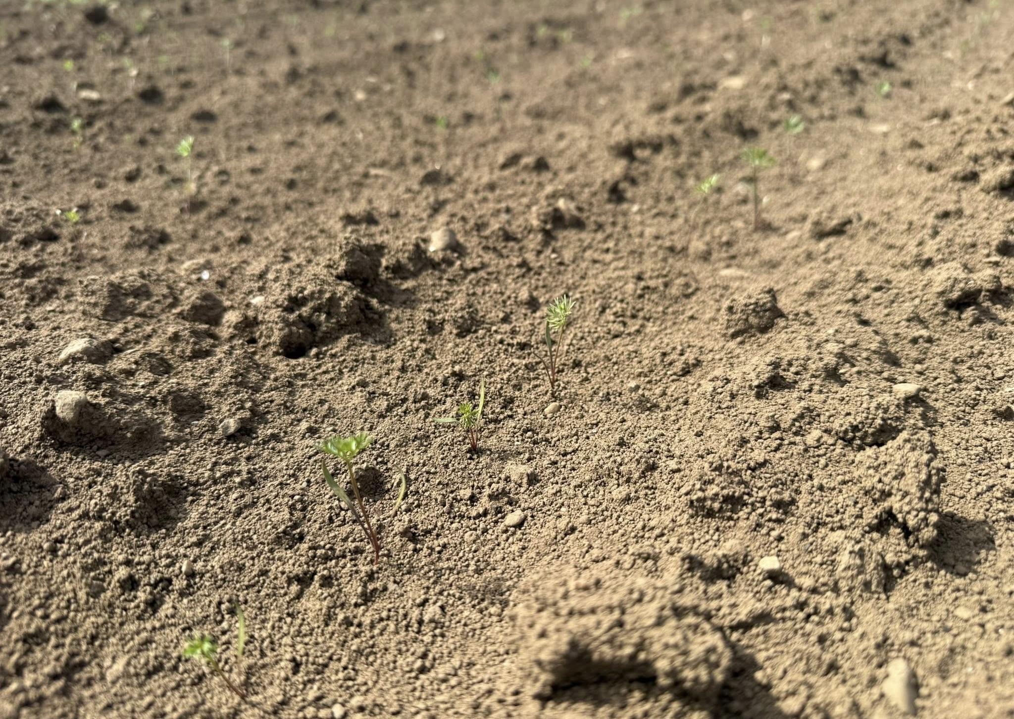 モイストガードを使用していない区画(右側)は土壌が乾ききり、発芽は確認できませんでした。