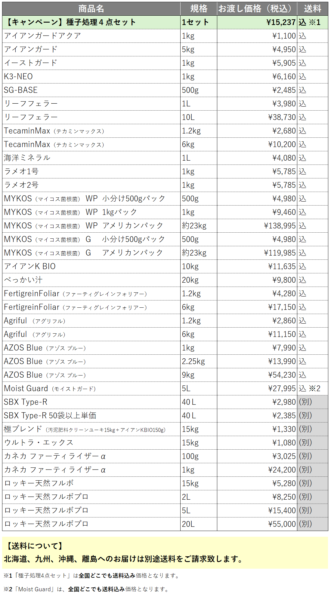【キャンペーン】種子処理4点セット